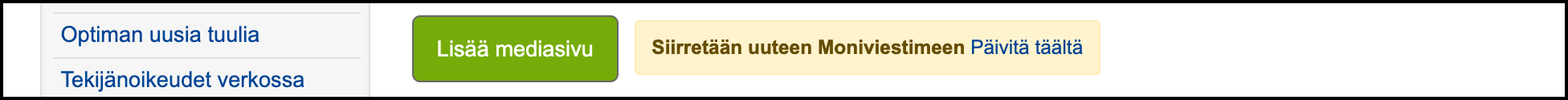 Sisällöntuottajat voivat helposti merkata, mitä tarpeellista sisältöä halutaan säilytettävän jatkossakin. Merkattu sisältö siirretään automaattisesti uuteen Moniviestimeen. Automaattiset siirrot aloitetaan alkuvuodesta 2026 ja prosessin etenemisestä tiedotetaan erikseen. Tulemme lisäämään tilannepäivityksiä myös tälle ohjesivulle.
